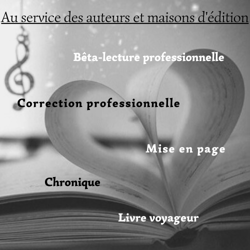 N'hésitez pas à me contacter pour de la bêta-lecture pro, de la correction pro de tapuscrits ou pour des chroniques sur les réseaux sociaux. Je serais ravie de travailler avec vous.